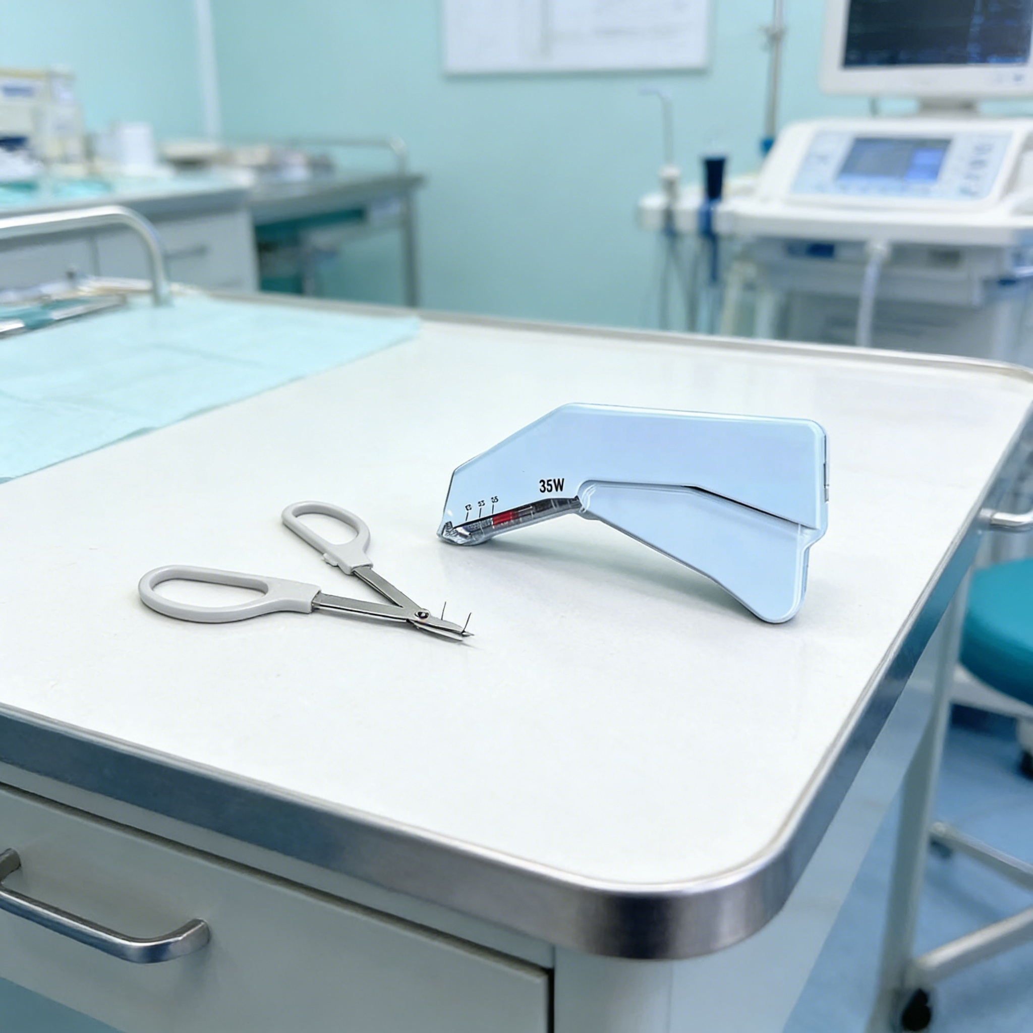 The device uses special surgical staples suitable for high-tension wounds, offering excellent biocompatibility with minimal tissue reaction. The staples do not adhere to blood scabs, making dressing changes and staple removal smoother and less painful for patients.
